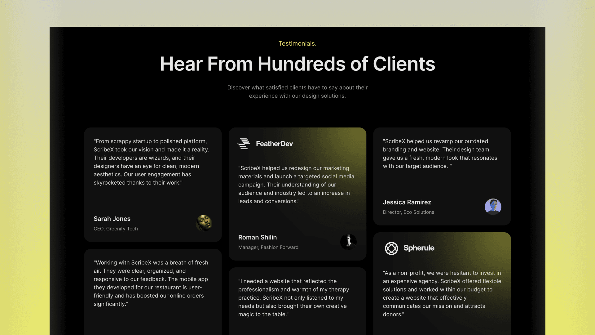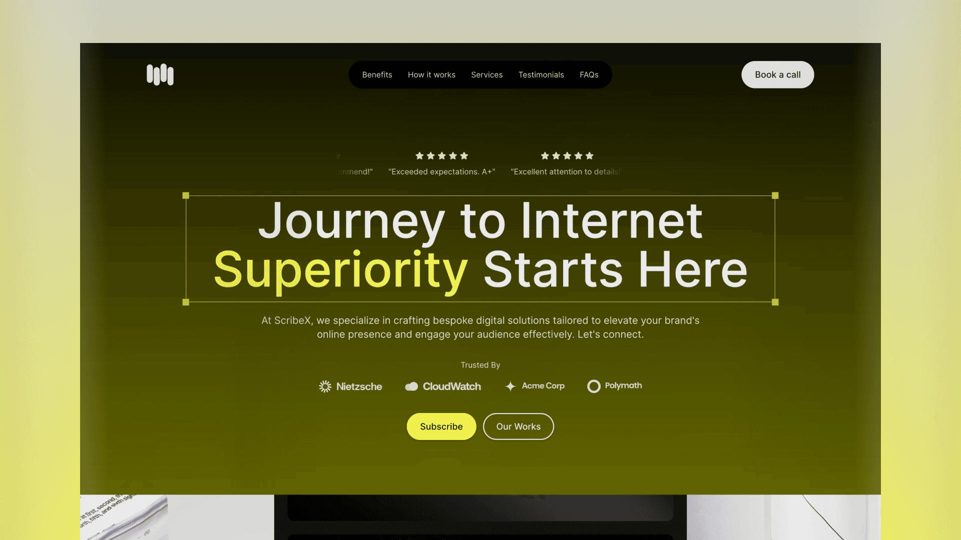 Join the ranks of successful productized agencies with ScribeX - the ultimate Framer template designed for productized agencies. ScribeX empowers your agency to attract, engage, and convert clients with ease.